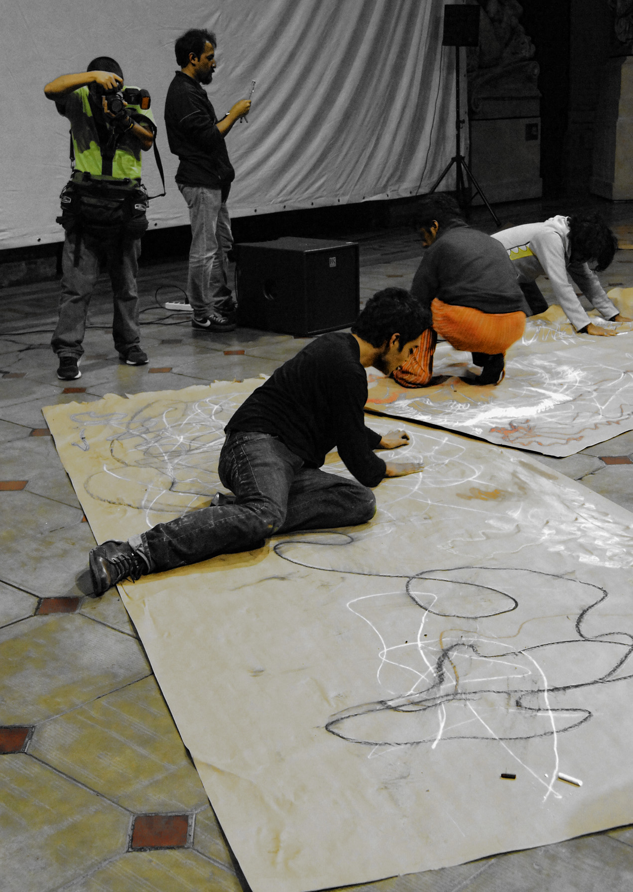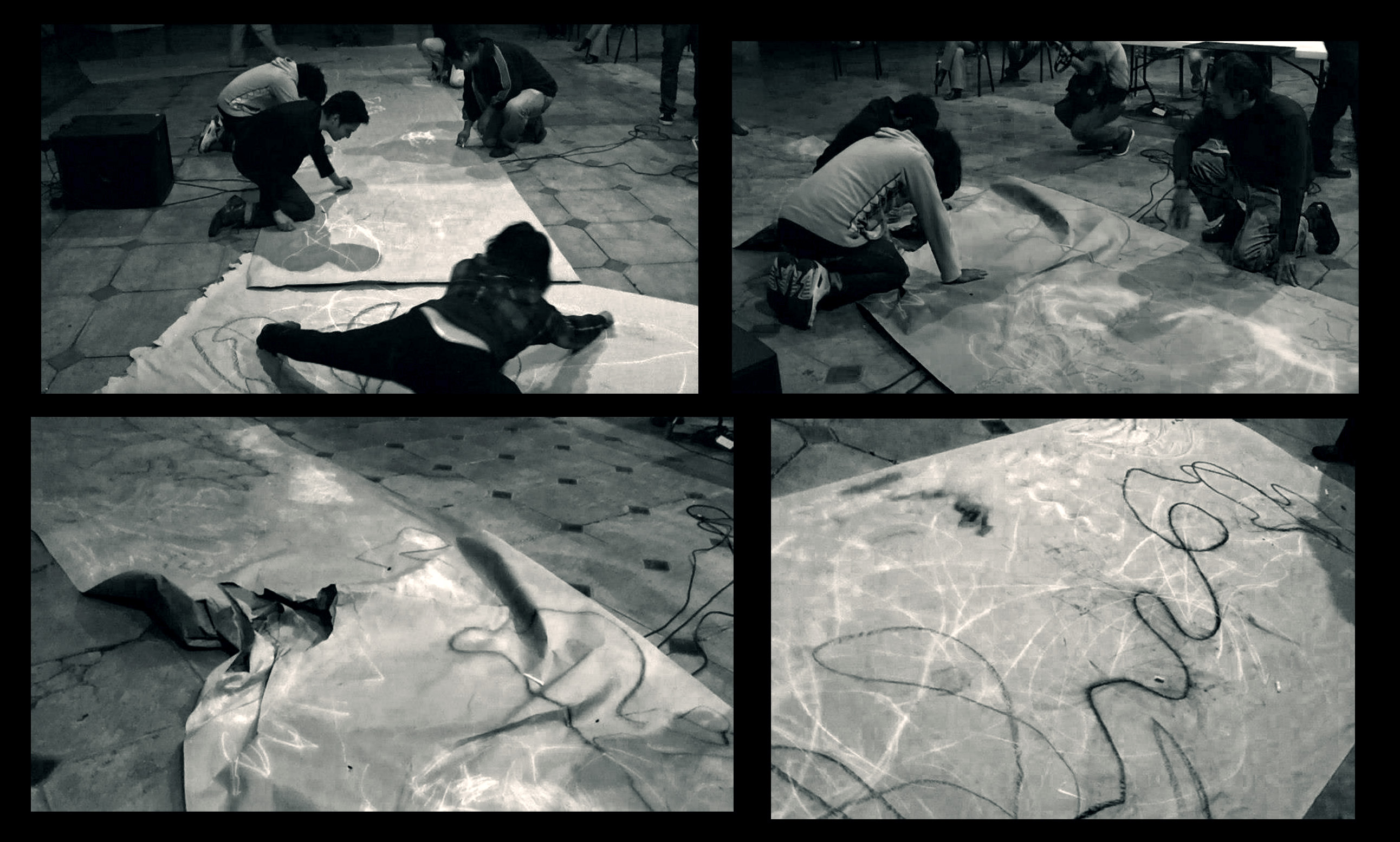 En el marco de la sesión «Sesión Aleatoria de Dibujo Sonoro», una pieza performática análoga que acciona el dibujo, el sonido y el cuerpo.
