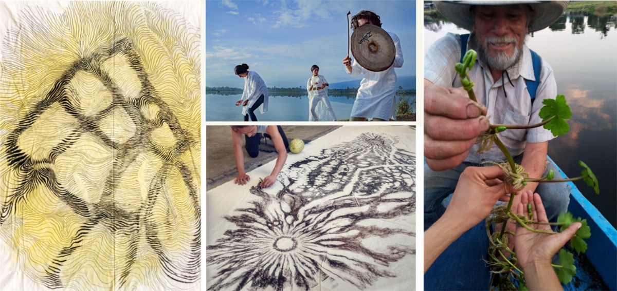 Proyecto* que consiste en una serie de dibujos en gran formato y acciones que exploraron la noción de lienzo como paisaje habitable. Esta serie fue el resultado de ejecutar una metodología participativa llamada Dibujo líquido en espacios públicos de zonas limítrofes entre paisajes urbanos y lacustres de las alcaldías Tláhuac y Xochimilco, Ciudad de México. La intención de esta serie fue visibilizar desde un lugar íntimo y las actuales prácticas de conservación del patrimonio natural y cultural llevadas a cabo por los habitantes de la región, frente a un problema urgente de contaminación, urbanización y eutroforización a causa del crecimiento de la mancha urbana.